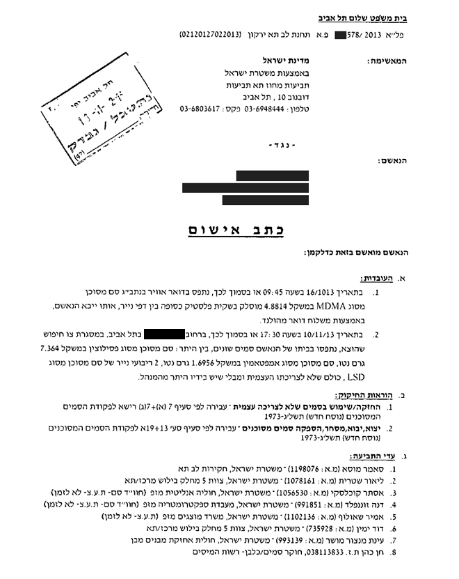 להלן העתק כתב האישום ופסק הדין שניתן בעניינו של הלקוח. מפאת החיסיון והשמירה על פרטיותו, פרטיו המזהים ומידע חסוי אחר הושמטו: