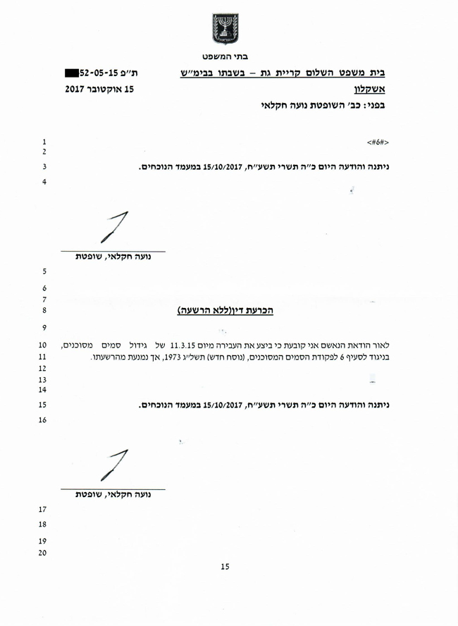 צפייה בפסק הדין בת"פ 48352-05-15
