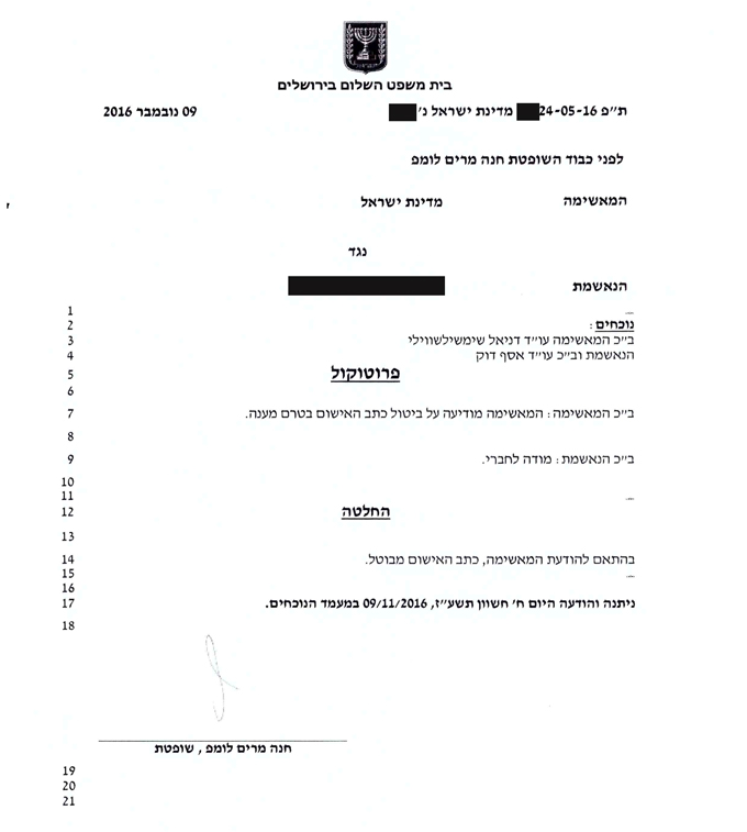 ביטול כתב אישום | ביטול כתב אישום עבירות אלימות במשפחה | הצלחות המשרד | חזרה מכתב אישום | כתב אישום אלימות במשפחה | מדור תביעות ירושלים | עבירות אלימות במשפחה | עבירות אלימות בתוך המשפחה | עורך דין ביטול כתב אישום | עורך דין חזרה מכתב אישוםהצלחות נוספות דוגמאות להצלחות המשרד בתחום