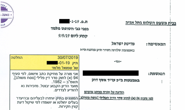 - ביטול כתב אישום ללקוח שהואשם בעבירות גניבה