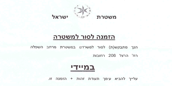 להלן דוגמה להזמנה לסור למשטרה שנשלחה ללקוח המשרד: