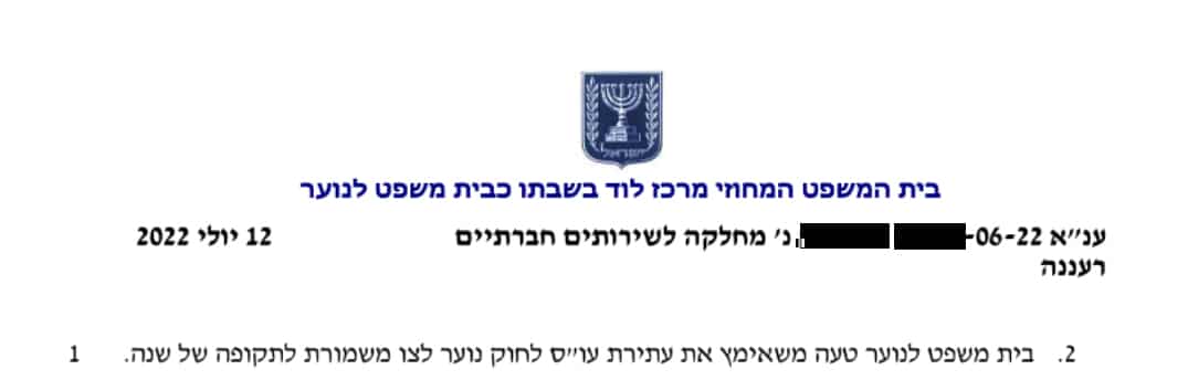 להלן העתק חלקי מהחלטת בית המשפט המחוזי בעניינם של הקטינים. מפאת החיסיון והשמירה על פרטיותם, פרטיהם המזהים ומידע חסוי אחר הושמטו: