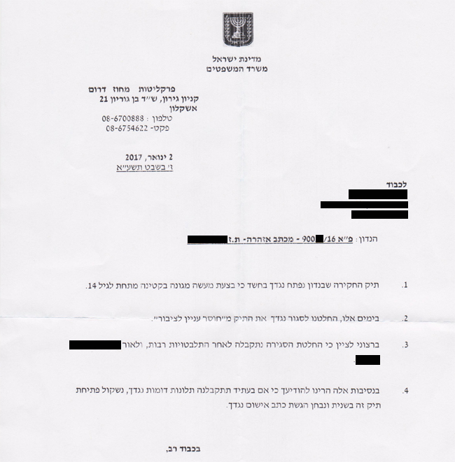 הנחיה חדשה של פרקליט המדינה – הודעת אזהרה או הבהרה לחשוד שהתיק נגדו נסגר