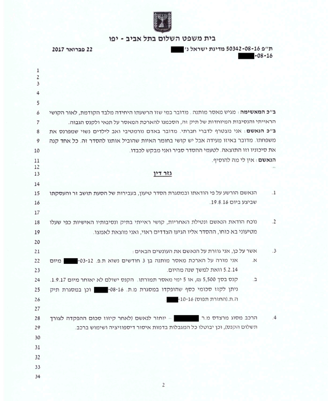 להלן העתק פסק הדין בעניינו של לקוח המשרד. מפאת החיסיון והשמירה על פרטיותו, פרטיו המזהים ומידע חסוי אחר הושמטו: