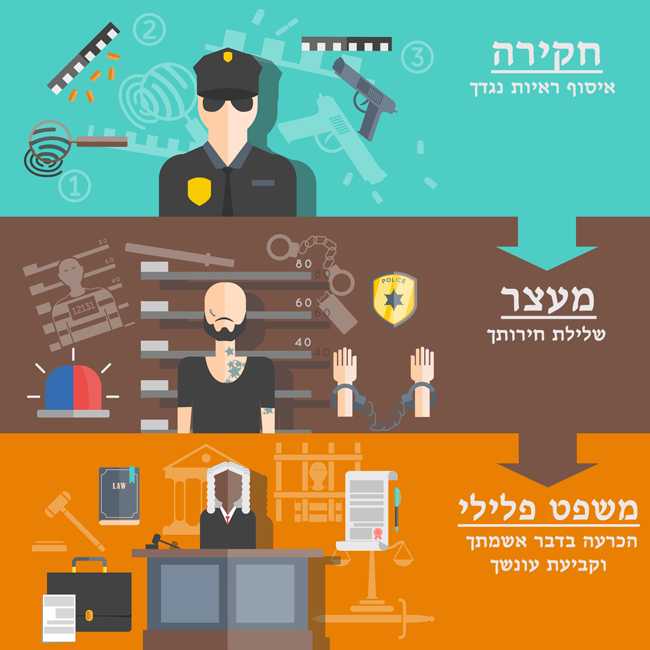 - קטגוריות נוספות: הליכי חקירה ומעצר | ייצוג חשודים ונאשמים | סגירת תיק פלילי במשטרה | שחרור עצורים ממעצר |