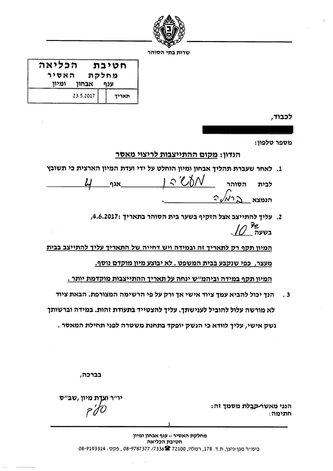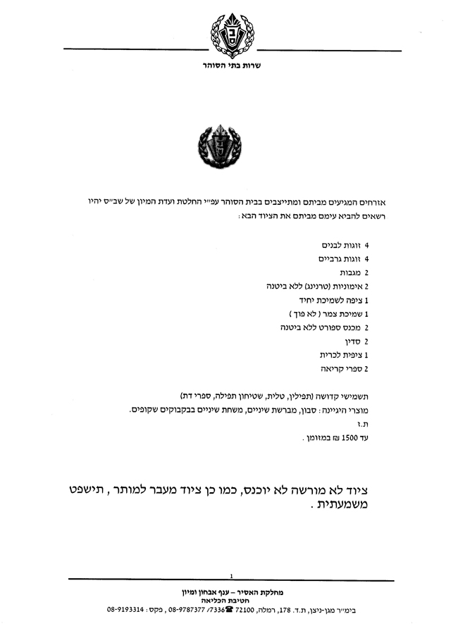 דוגמה למסמכים אותם מקבל האסיר בשלב המיון המוקדם