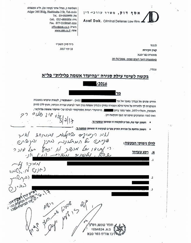 להלן העתק הודעת המשטרה בעניינו של הלקוח. מפאת החיסיון והשמירה על פרטיותו, פרטיו המזהים ומידע חסוי אחר הושמטו: