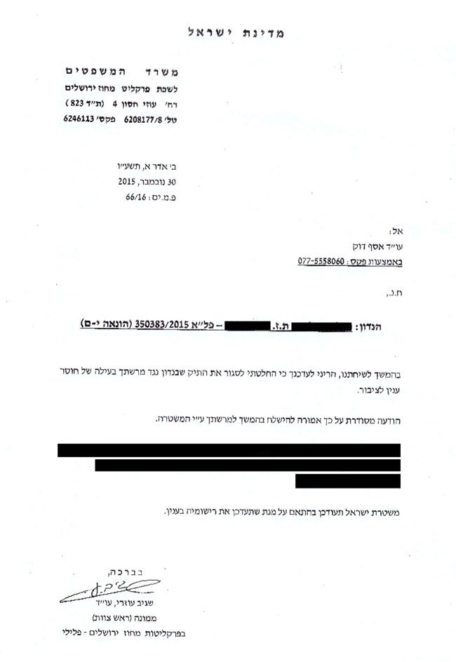 סגירת תיק פלילי ללקוחה שהואשמה בזיוף מסמכים וקבלת דבר במרמה