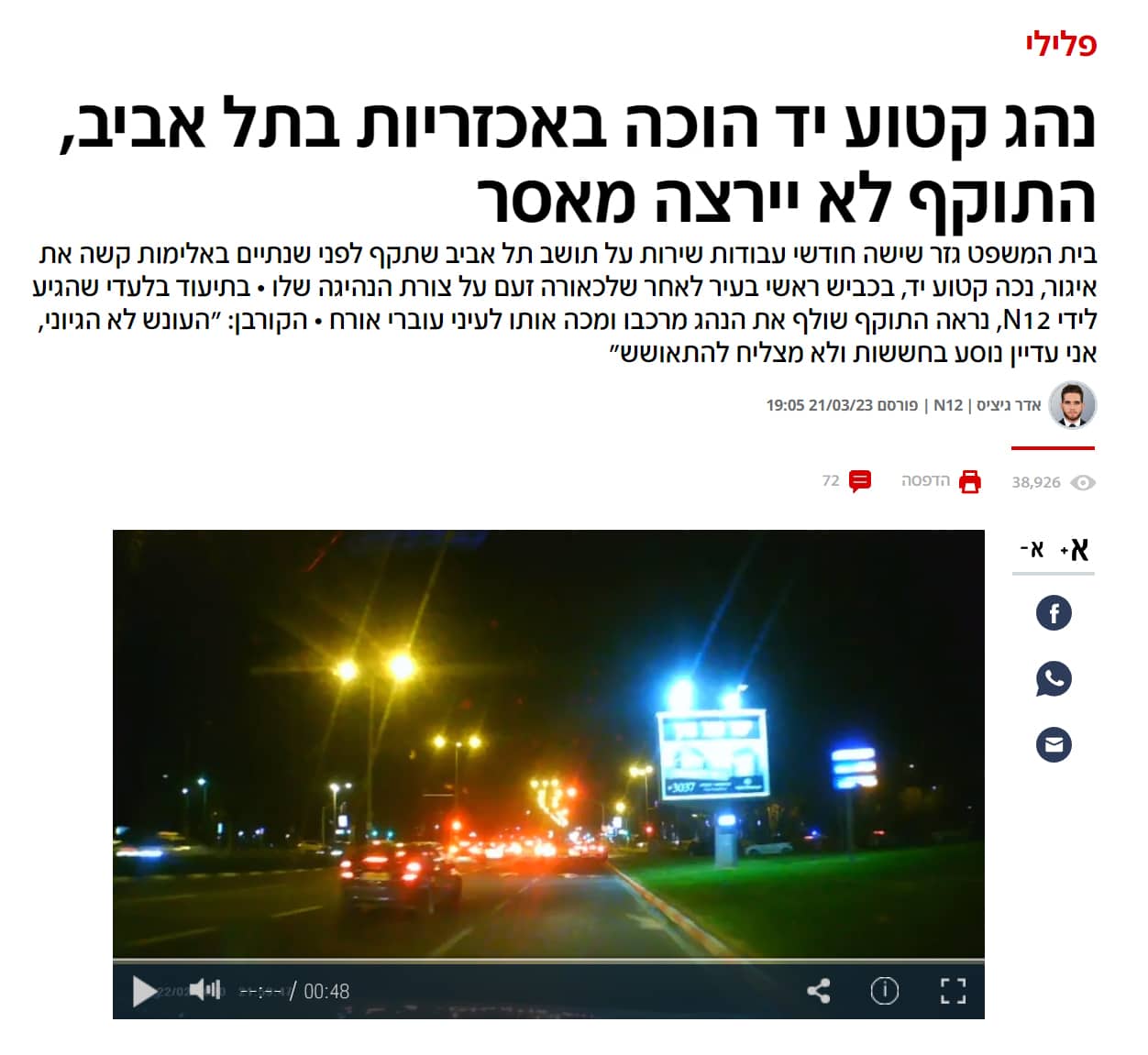 עבודות שירות בלבד ללקוח שתקף באכזריות ופצע נהג קטוע יד על רקע סכסוך בכביש