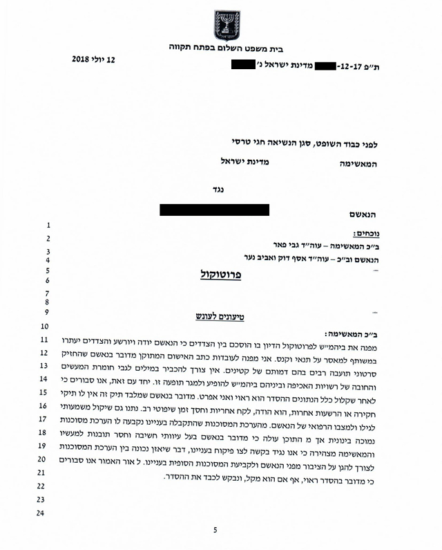 בעקבות כך, הושג הסדר טיעון מקל ביותר עם פרקליטות מחוז מרכז לפיו הלקוח הודה בכתב אישום שתוקן משמעותית, וזאת בתמורה לסיום ההליך הפלילי נגדו במאסר על תנאי ופיצוי בלבד.