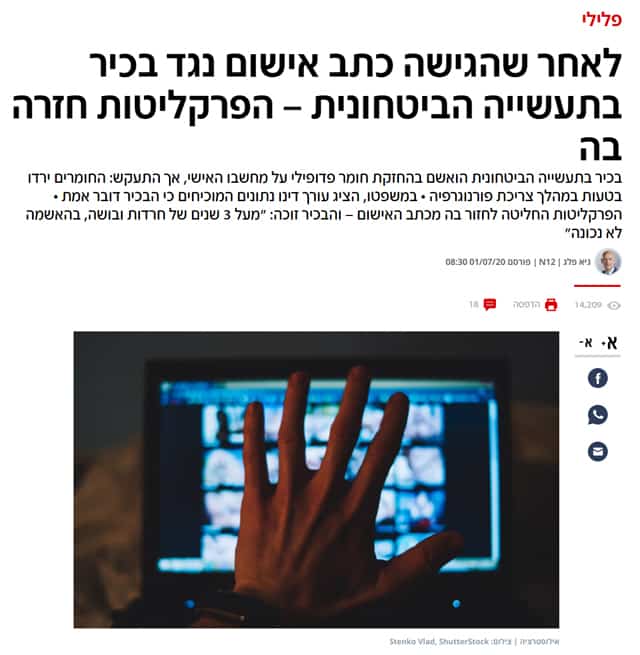להלן העתק כתבה בנושא שפורסמה בחדשות 12: