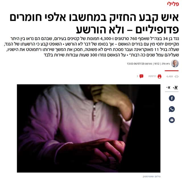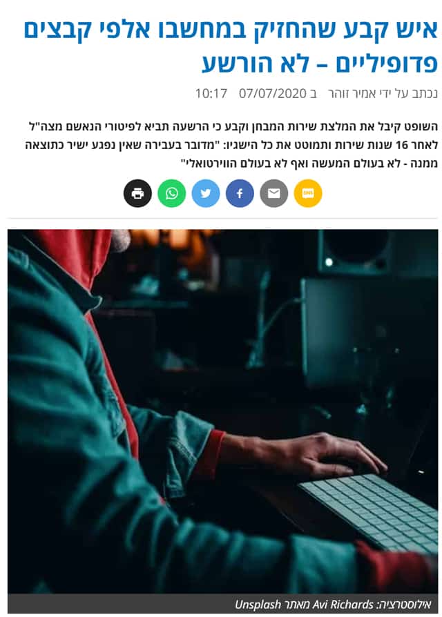 דוגמה נוספת – זיכוי בכיר בתעשייה הביטחונית שהואשם בהחזקה של אלפי תמונות וסרטונים פדופיליים